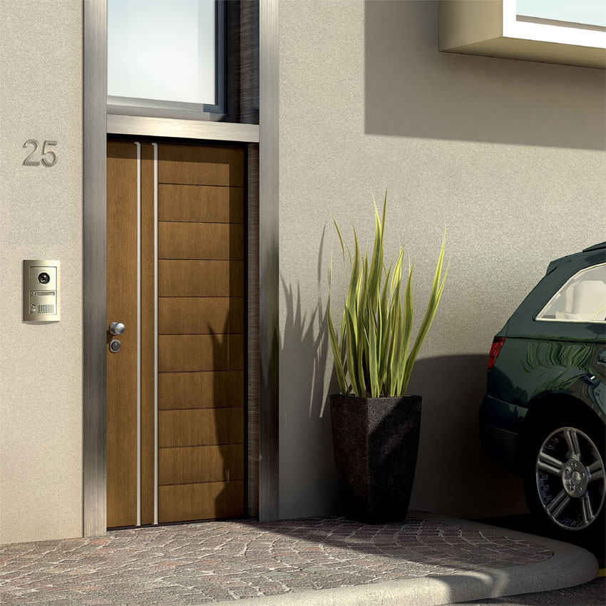 - Ευρυγώνιο ματάκι πόρτας, άγκιστρο περιορισμένου ανοίγματος και ρυθμιζόμενη πλάκα αντικρίσματος για την κλειδαριά